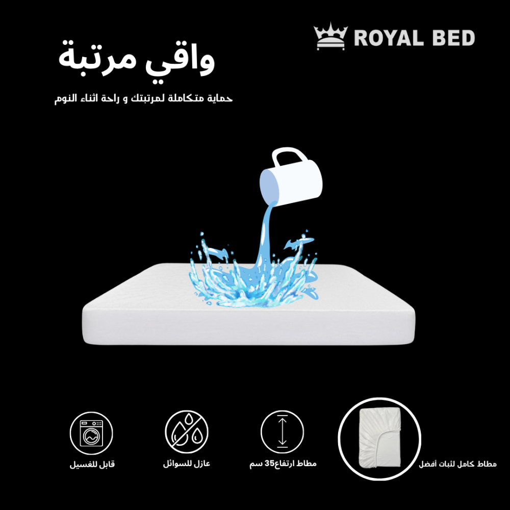 حافظ على نظافة وجودة مرتبتك واحميها باستخدام واقي المراتب العازل للماء الذي نقدمه لكم يحمي المرتبة من المياه والسوائل والرطوبة والأتربة والبقع والحشرات والجراثيم والفطريات وعث الغبار. فهو مكون من طبقتين الوجه العلوي عبارة عن منشفة ناعمة والوجه السفلي عبارة عن بلاستك عازل ويوفر لك هذا المنتج أيضاً الخامات ذات الجودة العالية التي تضمن لك عدم صدور أصوات من المادة البلاستيكية العازلة عند الحركة مع عدم الإحساس بارتفاع درجة حرارة الجسم بسبب المادة العازلة لأنه يوفر التهوية الجيدة من وإلى المرتبة ، كما انه قابل للغسيل .